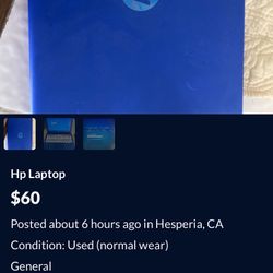 Hp Laptop (comes With Charger)$250Rialto, CA