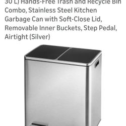 Dual Trash Can, 2×8 Gallon (2×30L) Hands-Free Trash And Recycle Bin Combo, Stainless Steel Kitchen Garbage Can With Soft-Close Lid $80Rialto, CA