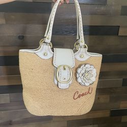 Coach Vintage Bleeker Natural Straw Floral Leather Bag$65Victorville, CA