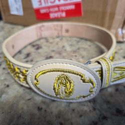 toddler boy charro belt gold /beige ivory leather. Virgin Mary $15Adelanto, CA
