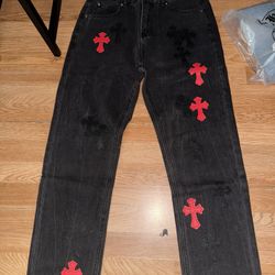 Chrome Jeans Leather Cross Patches Size 34 Men $180San Bernardino, CA