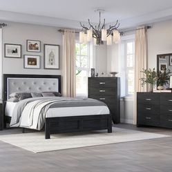 Brand New 4 Pcs Bedroom Set Bed, 1 Night, Dresser & Mirror Black W/ LED $869 Queen $869Redlands, CA