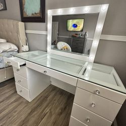 3 Drawer Vanity Desk With Lighting Mirror Gray High Gloss $599San Bernardino, CA