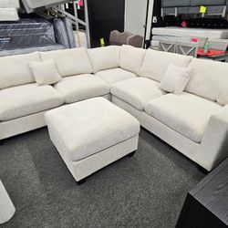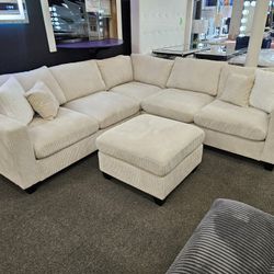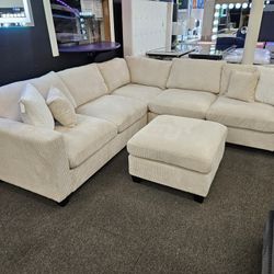 Brand New Corduroy Beige Ivory White Sectional With Free Ottoman $460Hesperia, CA