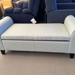 GRAY LINEN STORAGE BENCH OTTOMAN SEATING - MESA BANCOS$399San Bernardino, CA