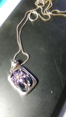 18" silver necklace with purple opal pendant, 925.$20Victorville, CA