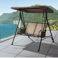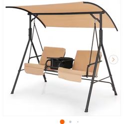 2-Person Canopy Metal Porch Swing Padded Chair Cooler Bag Rotatable Tray Beige$200Adelanto, CA