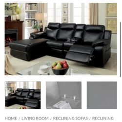 Black Leatherette Sectional Sofa With Recliner $979Hesperia, CA