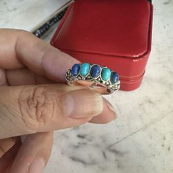925 Sterling Silver Designer Carolyn Pollack, Genuine Turquoise And Lapis Ring ,size 7, Hallmarked , Gorgeous Ring $40Victorville, CA
