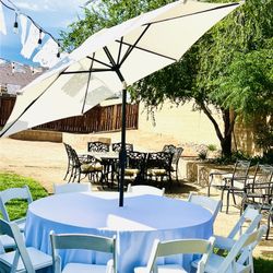 Umbrella sets includes tables, umbrella, plastic folding chairs and linens R. E. N. T. A. L. Adelanto, Victorville, phelan, apple valley, Lit$60Victorville, CA