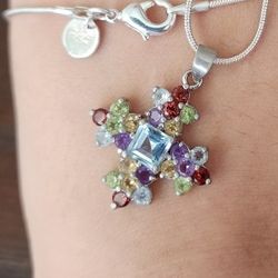 Vtg Multi Gemstone Maltese Cross Pendant Maker 925 Sterling Silver $45Victorville, CA