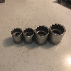 Qty 4 Deep Snap On 6 Point 3/8 Drive Sockets Standards # 11/16 - 3/4 - 13/16 - 7/8 In Great Condition$60San Bernardino, CA