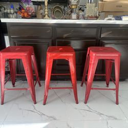 Set Of 6 Vogue Furniture Direct 24" High Bar Stools Backless Red Metal Barstools Indoor-Outdoor Counter Height Stools with Square Seat$100Hesperia, CA
