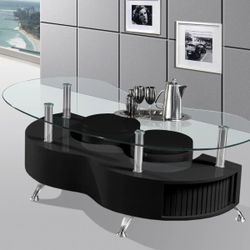 CONTEMPORARY BLACK COFFEE TABLE KIDNEY SHAPE GALSS TOP 2 STOOL STORAGE COFFEE CENTER TABLE - HOME DECOR ACCENTS - MESA DE ACCENTO CENTRO$499San Bernardino, CA