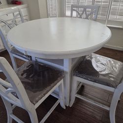 5pc Gray & White Pub Table Set includes round wood table and 4 matching chairs. Delivery, Pick Up and installation available $450San Bernardino, CA