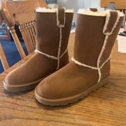 New Woman’s UGG Boots Size 7 Chestnut Brown & Sheepskin Fluff Trim & Inside $65Adelanto, CA