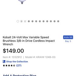 Kobalt Cordless Impact Wrench$190San Bernardino, CA