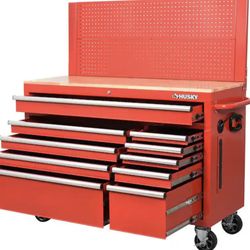 52 in. W 10-Drawer Gloss Red Mobile Workbench Cabinet with Solid Wood Top and Pegboard$480San Bernardino, CA