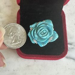 925 Sterling Silver , Designer Sally C, Carved Natural Turquoise Rose 🌹 Ring , Size 9 , Gorgeous, Marked SX 925 $48Victorville, CA