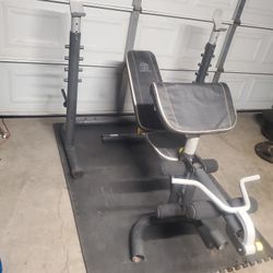 USED Gold Gym Weight Bench Still In Good Shape with adjustable bench Squat rack,Leg Developer & Preacher Pad with Curl bar $75Hesperia, CA