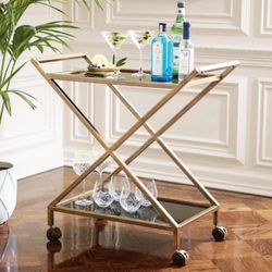 Ishtar Indoor/Outdoor Powder Coated Iron and Glass Bar Cart, Gold$80Rialto, CA