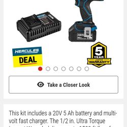 HERCULES 20V Brushless Cordless 1/2 in. Ultra Torque Impact Wrench Kit with 5 Ah Battery and Charger