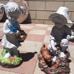 New Kids With Bird N Dog Made Out Of Cement Beautiful Yard Decoration $80Victorville, CA