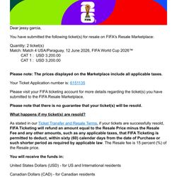 Paraguay Vs USA world Cup Tickets$3,000Monterey Park, CA