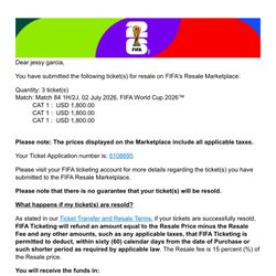 FIFA World Cup Ticket Match 84 1H/2J, 02 July 2026$1,800Monterey Park, CA