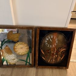 vintage shadow box wall clocks featuring dried flowers and a stained-glass style butterfly/floral 🦋$50Los Angeles, CA