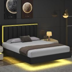 Full with LED Lights, Upholstered Floating Bed Frame with Headboard, Solid Wood Slats Support, No Box Spring Needed, Noise-Free, Easy Assembly, Black$100Rancho Cucamonga, CA