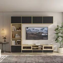 Oak and Black TV Stand Entertainment Center Fits TVs up to 75 in. with Glass Doors, Wall Cabinets, Bookshelf, Drawers$220Upland, CA