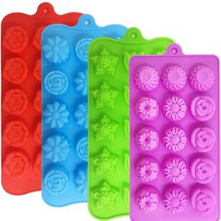 4 PACK Flower Shape Chocolate Candy Molds Set, Silicone 15 Cavity Baking Mold Ice Cube Tray for Wedding,Festival,Parties and DIY Crafts-Green, Blue, R$20Los Angeles, CA