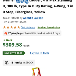 Werner d stop 7 ft yellow$200Rancho Cucamonga, CA