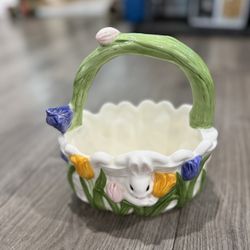 Ceramic Bunny Floral Decorative Easter Basket 7" Tall$15Temple City, CA