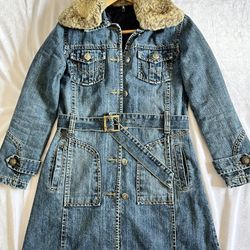 Faux Fur Collar Denim Coat – Warm Winter Jacket – Removable Lining, Size S$15Chino, CA