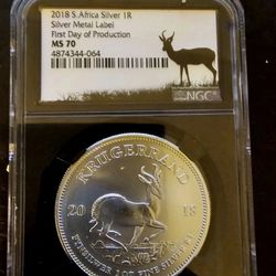 2018 South Africa Silver Krugerrand First Day Prod NGC MS70 Silver Medal Label$110Anaheim, CA