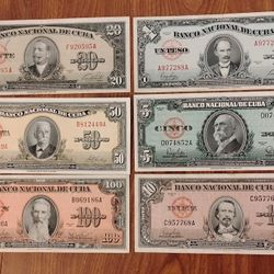Cuba Cuban Vintage Set Of 6 Rare Bills Banknotes Currency $200Glendale, CA