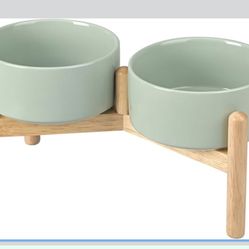 New SPUNKYJUNKY Ceramics Raised Dog Bowls with Wooden Stand - Elevated Bowls for Small Medium Dogs (Double 28.7OZ, Light Green)$25Los Angeles, CA