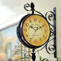 ColouredPeas Vintage-Inspired Double Sided Hanging Wall Clock Wrought Iron Antique-Look Round Brown Two Faces Retro Station Clock with 360 Degree Rota$40El Monte, CA