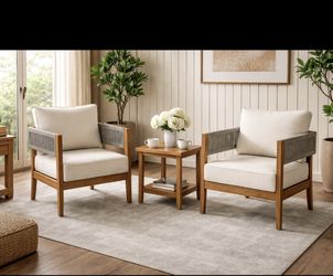 Set of 2 - Outdoor Patio Acacia Wood Woven Rope Deep Back Chairs w/ Beige Cushions [NEW] <CHAIRS ONLY> ** Table NOT Included$200City Of Industry, CA