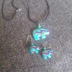 Aretes Y Dije Sterling Silver 925 Con Turquesa La Cadena Es Cuero El Broche Es Sterling Silver 925 $40El Monte, CA