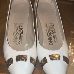 Vintage SALVATORE FERRAGAMO LEATHER BONE PUMPS HEELS SHOES SIZE 7.5 Made In Italy Used With The Box $115Pico Rivera, CA