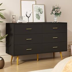Dresser for Bedroom, 6 Drawer Black Wood Dresser with Golden Handles, Modern Wide Dressers & Chests of Storage Organizer Drawer for Entryway Hallway$120Rosemead, CA