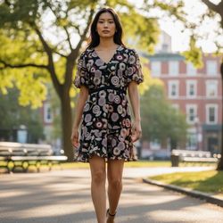 NEW Sam Edelman Women’s 12 Navy Floral Embroidered A-line Dress V Neck Ruffle Hem NWT$41Glendora, CA