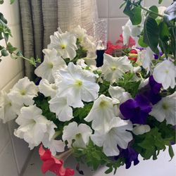 Petunias With Solar Pathway Light 1.6 Gallon Pot Hanging Pottery $30Palmdale, CA
