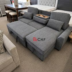 91"W Dark Gray Chenille Fabric Reversible Sleeper Sectional with Storage Chaise, Drop-Down Table, Cup Holders and Charging Ports$599Montclair, CA