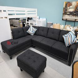 Black Fabric Sectional Sofa With Ottoman $519Downey, CA