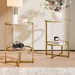 End Tables Set of 2, Round Side Tables for Living Room, 2-Tier Metal Frame Tempered Glass Side Table with Storage for Couch, Bedroom, Gold$60Rancho Cucamonga, CA