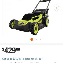 Ryobi Cordless Lawn Mower Kit 20” 40v$250Chino, CA